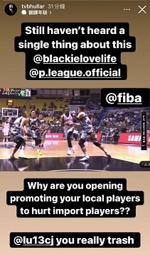 他TAG了聯盟和陳建州的帳號寫到「你為什麼開們,讓你本土球員去傷害外籍球員?」隨後再TAG呂政儒帳號寫道「你真的是個垃X」。