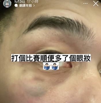 在昨日的比賽結束後,呂政儒貼出自己的臉照,照片中呂政儒的右眼下方有明顯的瘀血,他寫道「打個比賽順便多了個眼妝」後面還附上兩個無奈的貼圖。