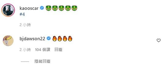 在獲選單周最佳球員後,高國豪也在個人社群上發文,沒有任何文字,而是送出五張人臉眼睛上有金錢圖案的貼圖,前洋將大勝也在底下留言四個火焰貼圖,鼓勵小老弟。