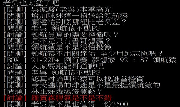 比賽結束後吳家駿受到不少網友的指責,身為球隊的後場指揮官,吳家駿近幾場的發揮可以說是相當低迷,前一場就曾出現空擋完全不看籃框的情形。