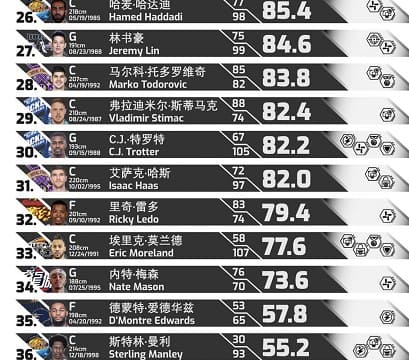 另外還有一名球員可以作為評斷愛德華的基準,就是上個賽季效力PLG台新夢想家的利多,他在離開PLG後轉戰CBA,利多在這份榜單中排名第32,總分為79.4,也是高出愛德華不少。