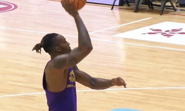 在比賽開打前20分鐘,霍華德和他的訓練師率先來到球場熱身,霍華德獨自在籃框一側接連練了幾個勾射動作,熱身過程中看不出來有任何異狀。
