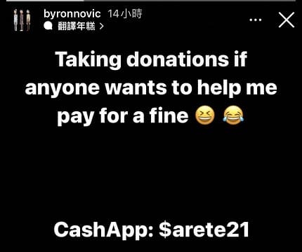 而牧倫斯的抗議,也讓他被聯盟罰款1.5萬元,事後他在個人IG發文募款,希望有好心球迷幫他支付罰款。