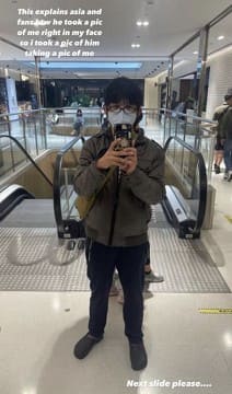 日前麥卡洛在個人IG限時動態上曬出一名男球迷,正在拿著手機對準自己拍照的照片,他寫道「他在我面前拍我照片,所以我在拍他正在拍我照片的這張照片」,文中他還氣憤寫到「這就是亞洲球迷的素質」。
