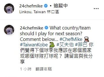 就在剛剛艾夫伯在個人社群貼出,自己在海外聯賽打球的照片,並詢問球迷「你們覺得下個球季我應該在哪個國家或哪個球隊打球呢?」