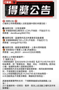 根據稍早17直播公布得獎公告,其中一項需要完成「直播間內丟出林書豪背包動畫禮物」的禮物林書豪應援短TEE乙件,最終是由ID「ENERGY0715」的帳號所拿下,而這個帳號的持有者就是鋼鐵人球員盧哲毅。