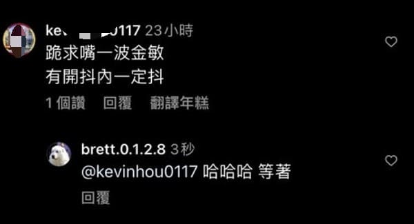 而在蘇翊傑貼文底下,有球迷留言寫到「跪求嘴一波金敏,有開抖內一定抖」,蘇翊傑也在底下回應「哈哈哈,等著」,另外也有球迷寫到「想看還的部分」,蘇翊傑則回「你們懂得,他們當大家都傻子,玻璃心的幾個人。」