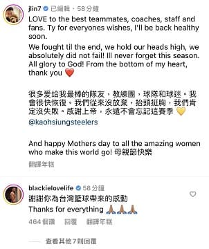 聯盟執行長陳建州也在底下留言表示「謝謝你為台灣籃球帶來的感動」。