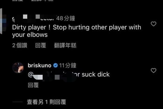 而麥卡洛面對酸民的留言也是沒在退縮,竟然直接用「Suxk dxck」回擊,並在個人IG曬出自己遭歧視言論攻擊的私訊,一人槓上大批豪粉,在網路上用鍵盤唇槍舌戰。