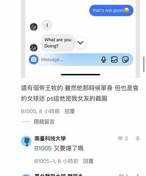 今日有網友在楊敬敏的爆料貼文底下,貼出牧倫斯主動私訊自己女友的截圖,原PO氣憤寫到「還有個帝王牧的,雖然他那時候單身,但也是會約女球迷,PS這他密我女友的截圖。」
