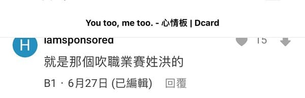 沒想到原PO在廁所躲了一、兩個小時,一出來該名裁判馬上伸出狼爪「一從廁所出來,便把我跩上床,撫摸他的私密處,我到現在還記得自己當時的感受,只能無助的發抖落淚,他說了一句 「掃興」後,也沒有再持續後面的親密行為。」