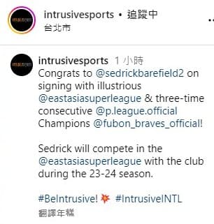 根據外國媒體「intrusivesports」爆料,富邦勇士簽下巴爾菲特,巴爾菲特將代表富邦在東超比賽中出賽。