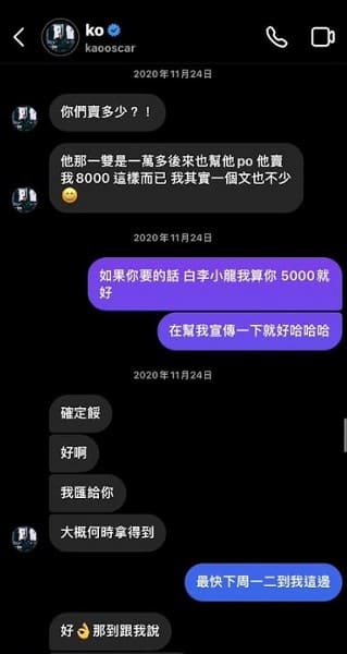 今天下午一名球鞋店家出面爆料,並付上多張截圖,稱PLG球星高國豪向店家索取要價破萬的球鞋,並以業配為名義,用5千元的優惠價買到球鞋,之後人直接消失,也沒有幫忙店家業配。