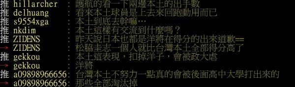 在網友曬出賽後數據,不少網友也轉風向表示「護航的看一下兩邊本土的出手數」、「看來本土球員是上去來回跑動用而已」、「本土到底去幹嘛…」、「昨天說日本也都是洋將在得分的出來道歉==松脇圭志一個人就比台灣本土全部得分高了」。