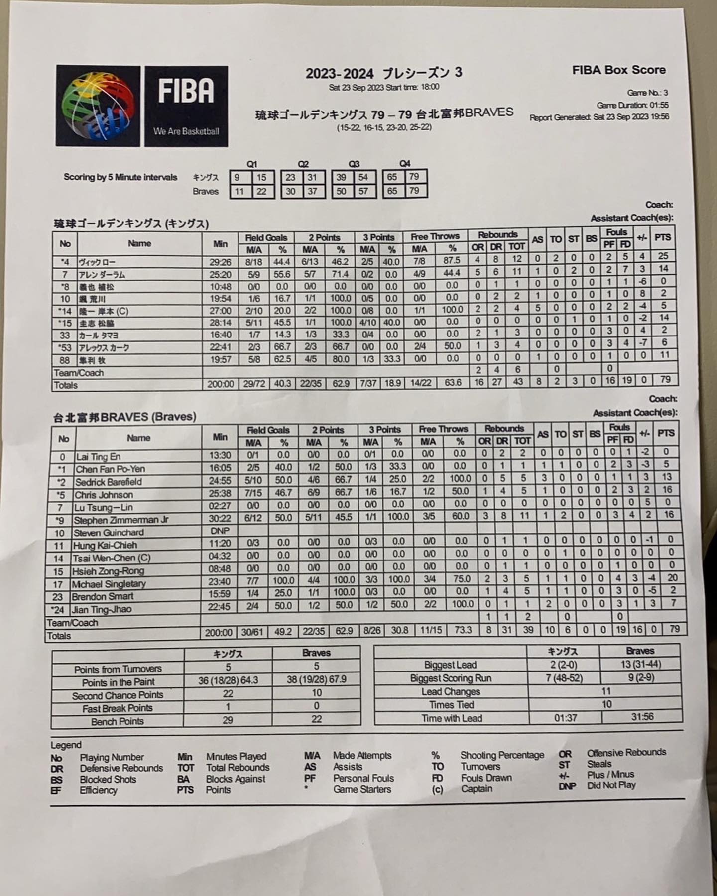 昨日富邦一口氣登錄六名國籍非台灣的球員,包括三名洋將強森、石門、辛特力,亞洲外員貝爾菲特,外籍生石博恩,華裔球員張文平(有登錄未上場),而國王隊這邊全隊僅有四名國籍非日本的球員。