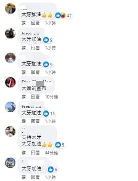 貼文底下也湧進大批網友留言,下方可以看到一排網友留言寫道「大牙加油」。