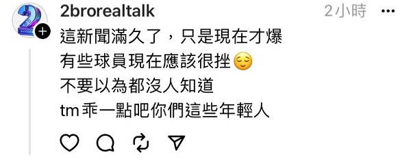 SBL球星吳季穎今日遭週刊爆料打假球,對此自媒體「二哥Real Talk」稍早也在社群開砲,並喊話希望現在的年輕球員可以乖一點。