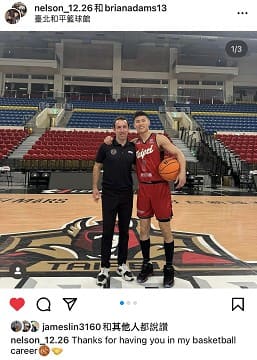林秉聖稍早發布兩張自己和布萊恩教練的合影,並寫到「感謝我的籃球生涯中有你」。