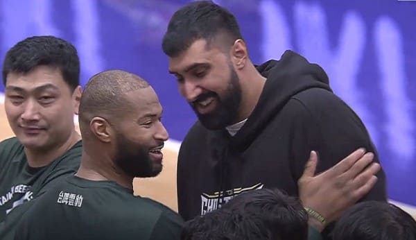 鏡頭中可以看到卡森斯和金恩、布拉在場邊閒聊,金恩和布拉過去都曾打過NBA,布拉甚至在效力國王期間,曾和當時是國王一哥的卡森斯當過隊友,彼此都相當熟悉。