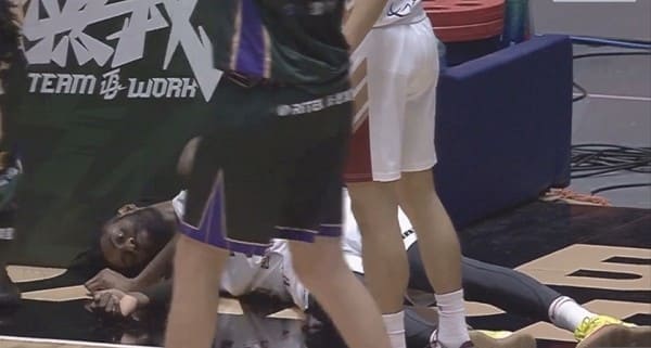 本場比賽第二節7分42秒,獵鷹洋將威力在回防過程中,身體突然癱軟倒地。