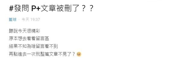 稍早就有球迷在「D-CARD」上發文寫到「聽說今天很精彩原本想去看看留言區結果不知為啥留言看不到再點進去一次就整篇文章不見了?」,不少球迷留言寫到「邦迷永遠不會承認他們這三年多被裁判寵成寶 然後再出國丟台灣的臉被日韓菲打爛 沒事啦 燈等燈等 富邦勇士」、「8打5不給嘴欸」、「超可悲 反正出個判決報告應付一下就好 上次判決報告關鍵2分鐘全是富邦得利 幫迷只會整天自X三連霸 不然就說輸不起」、「這場哨音超扯 被罵還刪文」。