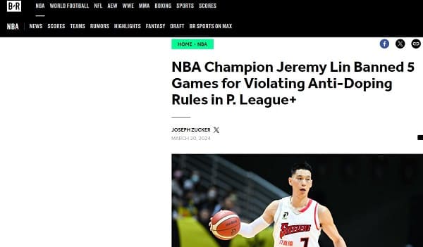 PLG職業籃球聯賽,新北國王球星林書豪因誤用違反WADA(世界運動禁藥管制機構)規定之「靜脈雷射」(ILIB)療法,遭到聯盟禁賽處分,事件爆發第三天,海外幾家知名媒體也逐漸開始報導。