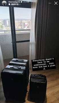 稍早敢搏曬出一張行李照,並寫到「不是所有事情都必須被理解,只要知道上帝自有祂的計劃。」