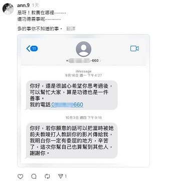 並曬出一張簡訊截圖,內容疑似是高國豪愛妻與他人聯絡的對話。簡訊中提到:「你好,還是很誠心希望你思考過後,可以幫忙大家,算是功德也是一件善事。」疑似想蒐集某段影片證據,讓事件再度浮上檯面。