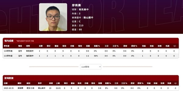 本季季外,廖楀壽轉學至新民高中,原本備受球迷期待。不過,他在資格賽中僅出戰對泰山高中的比賽,出場時間僅1分01秒,五項主要數據皆為零。