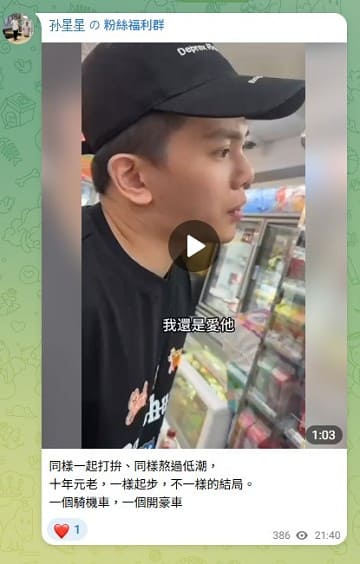 孫生最後感慨:「十年元老,一樣起步,不一樣的結局。一個騎機車,一個開豪車。」暗指雙方地位差距與關係決裂。此番言論再次在網路上掀起熱議,粉絲也紛紛留言:「兄弟情走到這樣太唏噓了」、「反骨真的回不去了」。