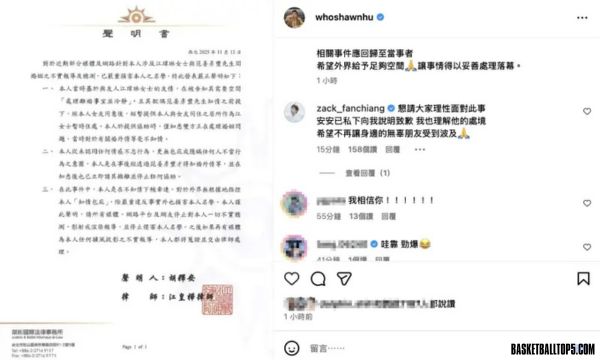 網友也注意到,胡釋安的聲明貼文獲得《全明星運動會》紅隊好友晏柔中、房思瑜等人按讚,似乎也間接表達立場,與事件中的粿粿、王子劃清界線,引起熱烈討論。
