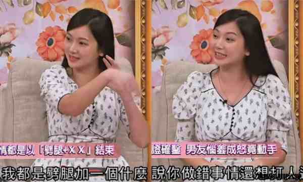 優格姐姐回憶,當時的戀情經常伴隨傷害,「劈腿是一定有的,所以都是劈腿加一個什麼。」主持人提到其中一段為「劈腿加囚禁」時,她也點頭承認,並表示當時期待的外景工作遭前男友反對,對方誤以為她會與導演產生曖昧,即便她解釋導演是女性,仍無法獲得信任。