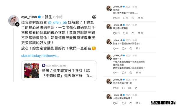 孫生稍早無預警發文,公開兩人昔日合照並坦言已分手,表示雙方都想給對方更多,卻始終無法做到,每天睡不好,也不願再讓爭吵持續。隨後多芬也在貼文下補充,首次完整道出感情破裂的原因,引發不少網友關注。