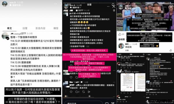 TPBL職業籃球聯賽新竹攻城獅球員高國豪,先前因遭指控「私約大嫂」引起外界討論,事件後續更引發他與哥哥高國強在餐廳外發生肢體衝突。儘管大嫂劉家菱事後澄清,相關互動發生於高國豪婚前,且當時與高國強並無認識,但爭議仍持續受到球迷關注。高國豪稍早已發布公開聲明,針對情緒失控與不當言行致歉。不過,原以為告一段落的風波,卻因大嫂今日於社群的一連三則限時動態,再度引發討論。