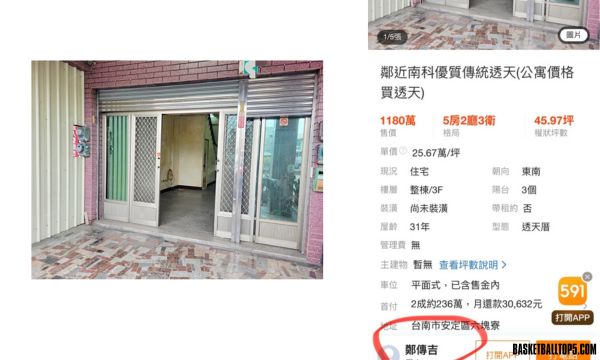 根據網友截圖比對,鄭男名下一處位於台南市、權狀約45.97坪的住宅,近期出現在房仲平台上,開價1180萬元,還特別附註「鄰近南科優質傳統透天(公寓價格買透天)」。進一步點入賣家資料後,相關資訊與鄭男身分高度吻合,隨即在網路社群引發熱議。