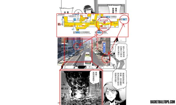 梁紹先在貼文中表示,經比對新聞畫面後發現,漫畫中設定的爆炸位置,位於台北車站從M7出口望向M8出口的地面區域,爆炸點落在M3出口與M8出口之間的軸線上,且較接近M8出口;而此次實際事件中,嫌犯投擲煙霧彈的位置,同樣位於M3至M8出口軸線附近,僅差別在於一處發生在地面空間,一處則在地下通道。