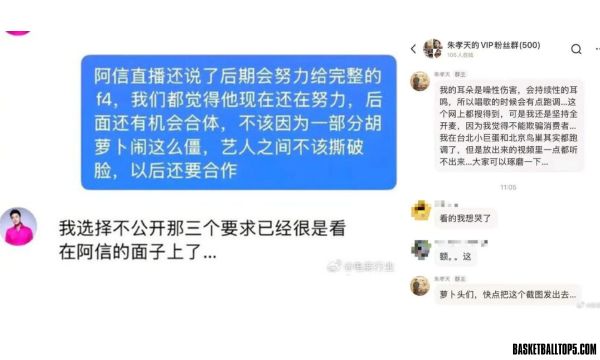 微博截圖顯示,留言中提到「他都被網暴成這樣了,他們三個還是選擇在台上悶聲發大財,如果真的見面了,還能一起沒有任何芥蒂的演出嗎?」朱孝天指出,自己演出時已無法展現當時的感受。另一則留言則提及,他因噪性耳傷導致耳鳴,唱歌時容易走音,但公開影片中似乎正常,暗指存在假唱情形,並強調自己保留證據。
