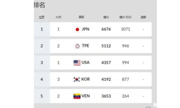 根據WBSC最新數據,日本隊以6676分持續穩居世界第一,我國則以5112分穩坐第二名,與排名第三的美國(4357分)及第四名的南韓(4192分)相比,已取得近千分的領先優勢。此一排名統計涵蓋近4年間各項國際賽事表現,具備高度代表性。