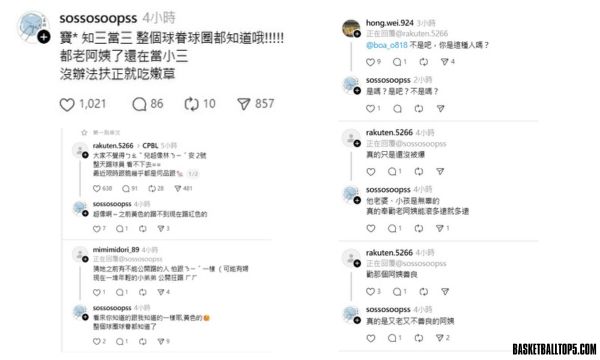 貼文下方,不少網友直接標記啦啦隊女孩寶兒,並追問「不是吧,你是這種人嗎?」原PO則以反問方式回應「是嗎?是吧?不是嗎?」引發更多討論。另有網友留言指出「真的只是還沒被爆」,原PO回應強調「他老婆、小孩是無辜的,真的奉勸當事人能遠離就遠離」,顯示該事件背後涉及家庭因素,言論亦引起關注。