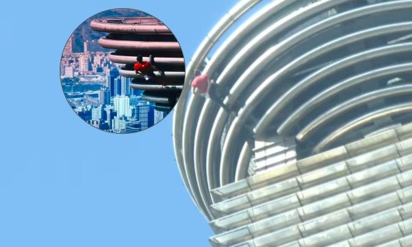 在接近攻頂階段,霍諾德一度出現短暫鬆開雙手的動作,現場主播隨即發出驚呼。不過他隨後疑似僅以腳部力量穩定勾住建築結構,迅速重新調整姿勢,繼續向上攀登,整體動作仍維持高度穩定,展現其頂尖的技術與冷靜判斷能力。