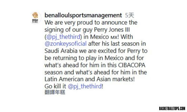 前台籃洋將「冰水」瓊斯近日宣布加盟墨西哥聯賽,將展開職業生涯新篇章。