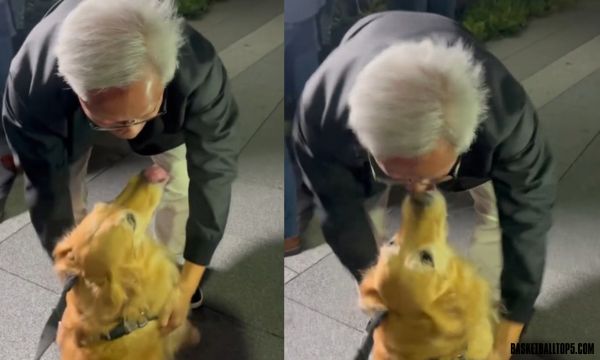 影片中可見,黃仁勳遇見黃金獵犬後主動彎腰打招呼,神情相當親切。沒想到黃金獵犬一看到他低頭靠近,立刻熱情伸出舌頭「親」了上去,讓黃仁勳當場笑開懷,並溫柔回應:「耶你好可愛,你好開心。」整段互動自然又溫暖。