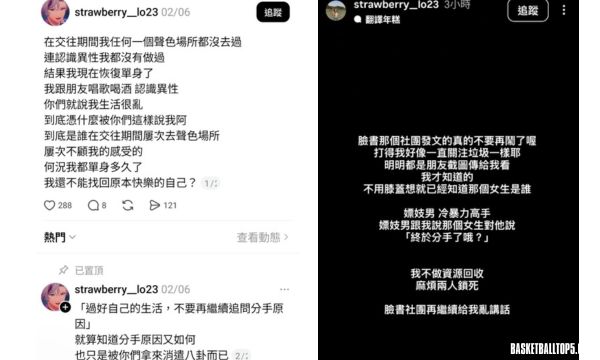 TPBL 職業籃球聯賽球星王柏智昨日才在社群平台高調曬出新歡合照,原以為是幸福新開始,沒想到隨即遭到前女友在 Threads及 Ig 限時動態發動「毀滅式大掃射」!前女友痛訴王柏智在交往期間多次出入聲色場所,甚至直接標籤對方為「嫖妓男」與「冷暴力高手」。她更憤怒揭露,對方與新歡疑似早已搭上線,並霸氣回嗆:「我不做資源回收,麻煩兩人鎖死!」