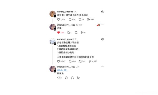 此外,網路上流傳一份「交往對象三種人不能碰」的名單,其中包含「喜歡胖鯊魚鯊西米的」,羅羅也親自在該則貼文下留言「胖鯊魚」,等同於公開認證王柏智就是該名單中的危險對象。