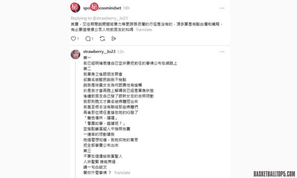 TPBL職籃球員王柏智的感情私事再度引發熱議。其前女友羅羅於今(23)日再度透過社群針對近期酸民的惡意指控以及前任現任女友的挑釁行為作出強硬回擊。她直言自己原本並不想將前任私事公開,但因遭受長期抹黑,決定「如她所願」揭露完整真相。