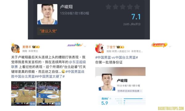 盧峻翔末節的「助攻」表現也引發中國論壇虎撲瘋狂惡搞。由於其表現過於符合中國隊利益,不少中國網友紛紛在球員評分區留言: