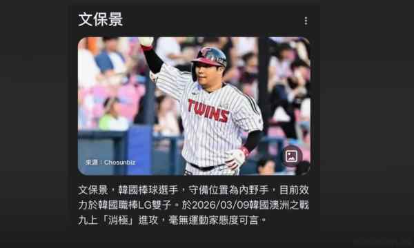2026 世界棒球經典賽(WBC)C 組預賽於今(9)日上演終局之戰,韓國隊雖然以 7:2 擊敗澳洲、挺進邁阿密 8 強,但九局上半強打文保景「站著不動被三振」的控分疑雲,引發全台球迷瘋狂出征。面對個人維基百科遭惡改、Ig 被萬人留言灌爆,文保景在深夜做出「毀滅性決定」,關閉所有社群帳號,僅在受訪時心碎留下最後 8 字:「終於要去邁阿密了」。