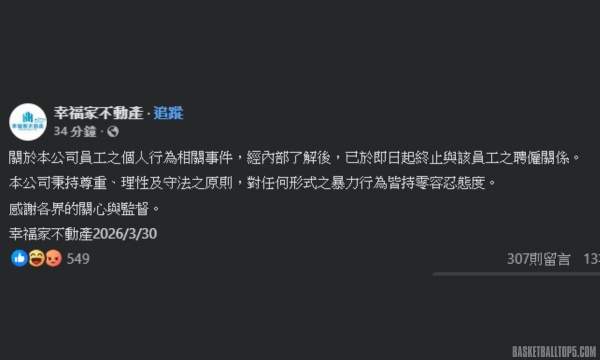 台南亞太棒球場掌摑事件持續延燒!昨日發生在亞太首戰的暴力事件,蔣姓男子不服動線引導,竟當眾掌摑工讀生。該男子的行徑引發全民公憤,隨後其身分遭起底為知名房仲「幸福家不動產」的管理階層。在網友狂洗公司評價的壓力下,任職公司於今日凌晨 1 時許發布緊急聲明,宣布即刻解僱該名員工,蔣男的「法拉利人生」恐因這一巴掌徹底崩盤。