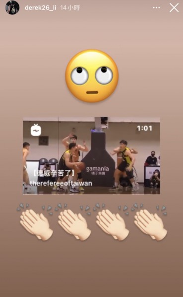 隨後李德威也在李德威也在限時動態分享這一個吹判,並且附上一個白眼的符號。