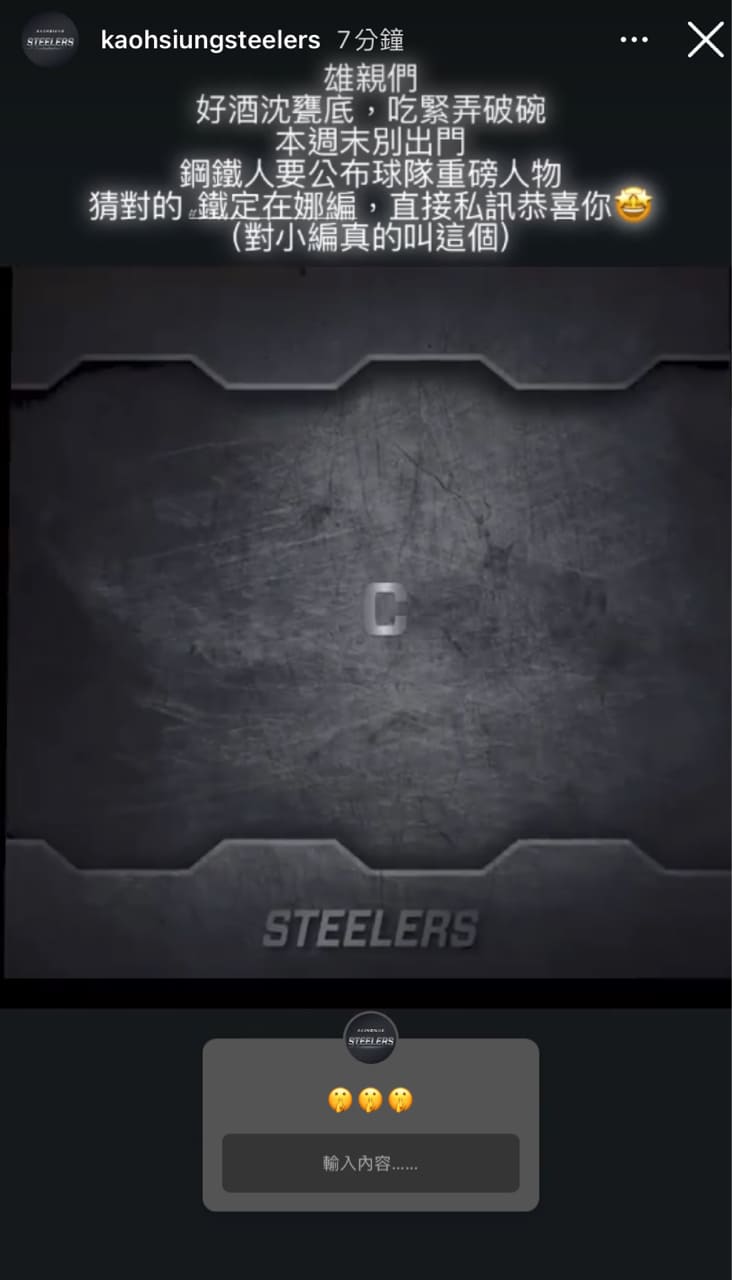 昨日鋼鐵人官方IG在限時動態上發文寫道「雄親們,好酒沉甕底,吃緊弄破碗,本周末別出門,鋼鐵人要公布球隊重磅人物。」